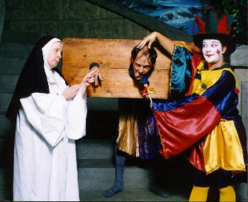 The Lord High Chancellor acts as your evening’s MC and guide, and your hostess, the Dowager Duchess, is a “strong” and magnificent lady (even if she does have some chest and facial hair!). The Duchess has decided it is time her beautiful and spirited ward, the Lady Maude, be married off to a suitable gentleman with money and title. But the penniless minstrel, Geoffrey, captures the Lady’s heart. The merchant, Master Garnet, intends to help Geoffrey, but on whose side is the Duchess’ watch guard, Poppett, or the holy Friar?