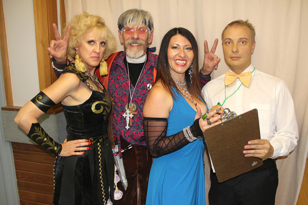 What happens at a Pegasus mystery show – other than tons of fun where “You’ll Die Laughing?!” At the beginning, guests find a helpful info sheet/ “ballot” at their place. Actors enter and perform scenes in among the audience. These episodes introduce the characters, plot and motives while setting the scene for FUN! The action is up-close and guests can inter-act, or just sit-back, Laugh and enjoy! Then, a dramatic (or more accurately, Comic) ‘Murder’ occurs. A break is taken, allowing guests to discuss events, formulate theories, and devise questions. The performance then resumes with further fun scenarios.
